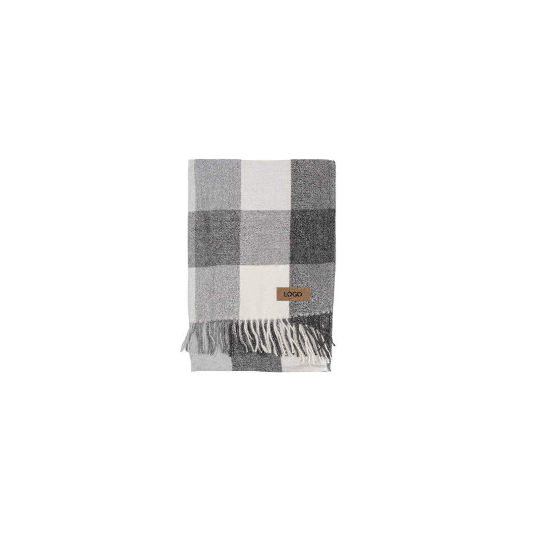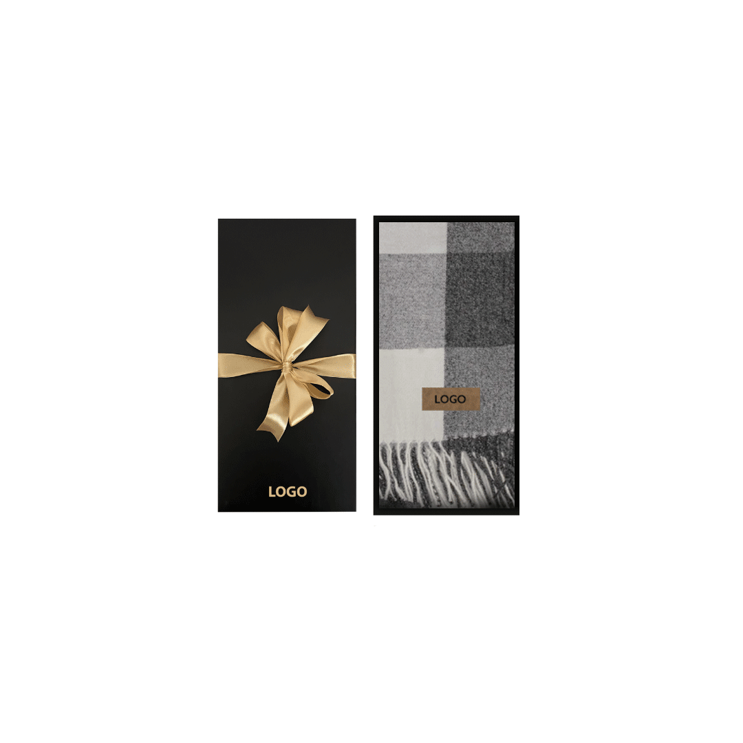Bufanda cashmere a cuadros de 230gr con flecos, varios colores a eleccion segun stock, incluye etiqueta de ecocuero con logo del cliente. Presentación: Caja premium imantada de 30x14cm con logo y/o gráfica a un color.