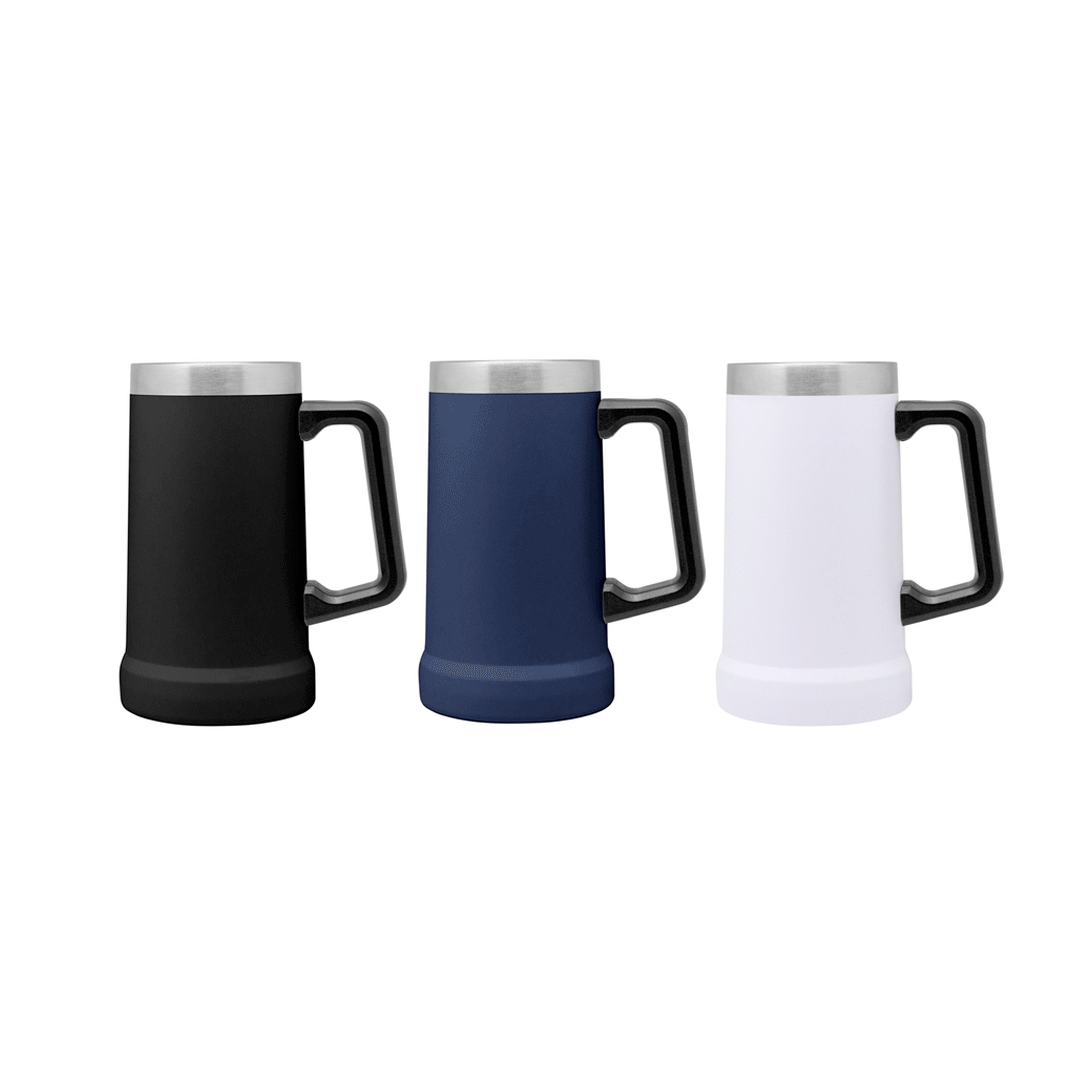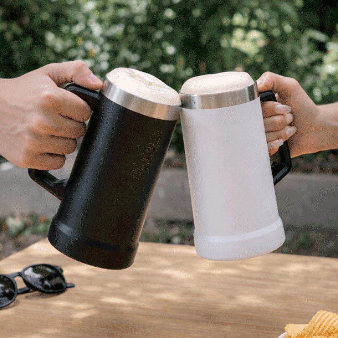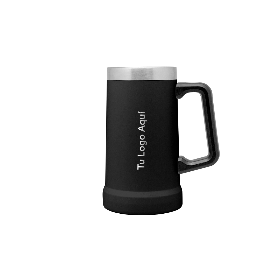 Ø 10 x 17cm. Capacidad 700 ml. Acero inoxidable. Jarro cervecero doble pared, sellado al vacío. Interior en acero 304 y exterior en acero 201. Mango Plástico. Pintura Powder coat con logo grabado laser. Presentado en caja kraft con adhesivo full color personalizado por cliente.