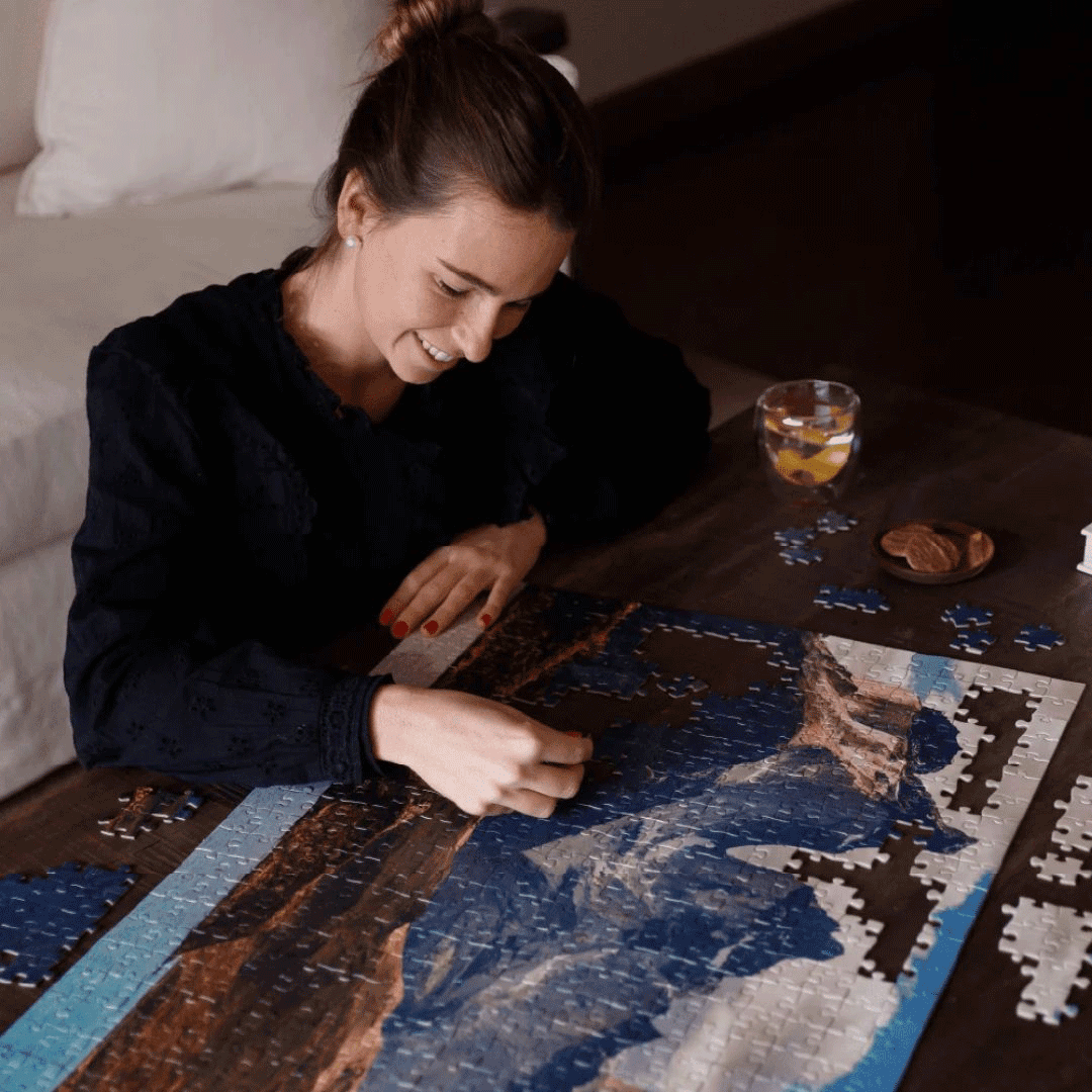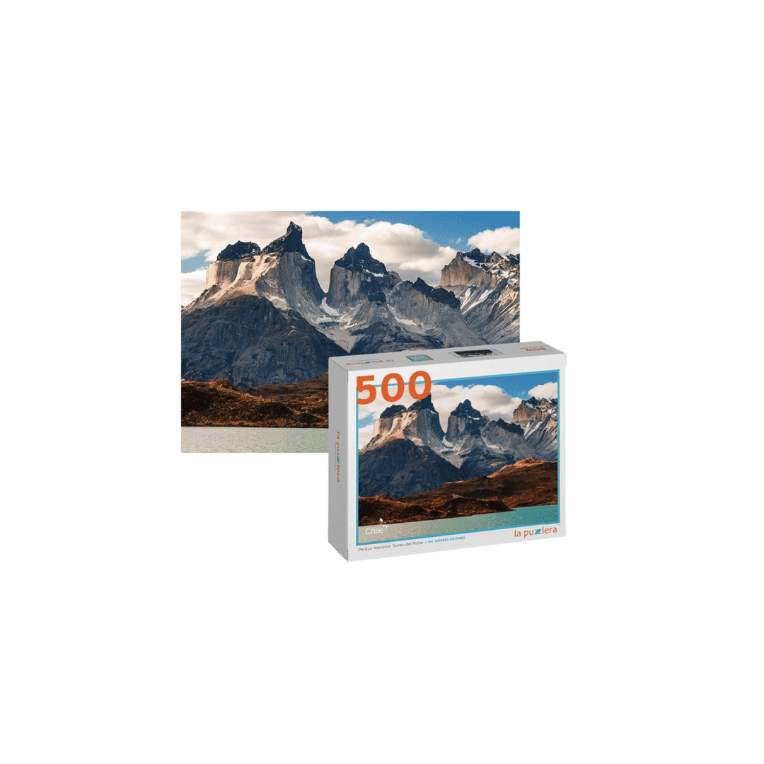 Descripción: Puzzle de 500 piezas diseño parque nacional torres del paine, armado mide 70x50cm. Presentación: Caja de cartón envuelta con papel kraft y cinta de regalo, color a elección. Tarjeta de saludo a full color de 12×7,5cm (1 cara)