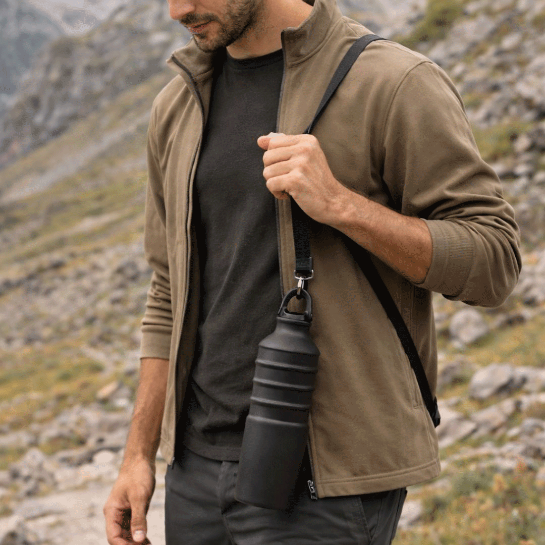 Bolsa kasolin impermeable de 10L de capacidad, fabricada en resistente poliéster 300D RPET. Cierre de seguridad, asa con hebilla de ajuste y mosquetón incluido. Logo aplicado a un color. + Botella circuit de aluminio 750ml, con tapa rosca y silicona, agarre para facilitar su transporte. Logo en grabado laser. Presentado en caja kraft de 25x20cm con gráfica y/o logo a un color.