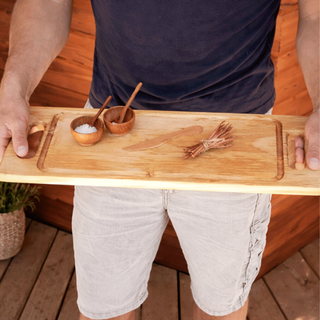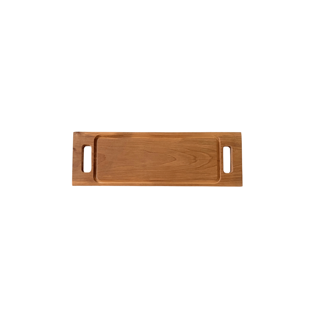Tabla rauli para asado, forma recta con dos asas, tamaño de 60 x 20 cm con logo grabado de 7cm de ancho máximo. Presentado en bolsa crea algodón de 63 x 22 cm con logo y/o gráfica corporativa a 1 color.