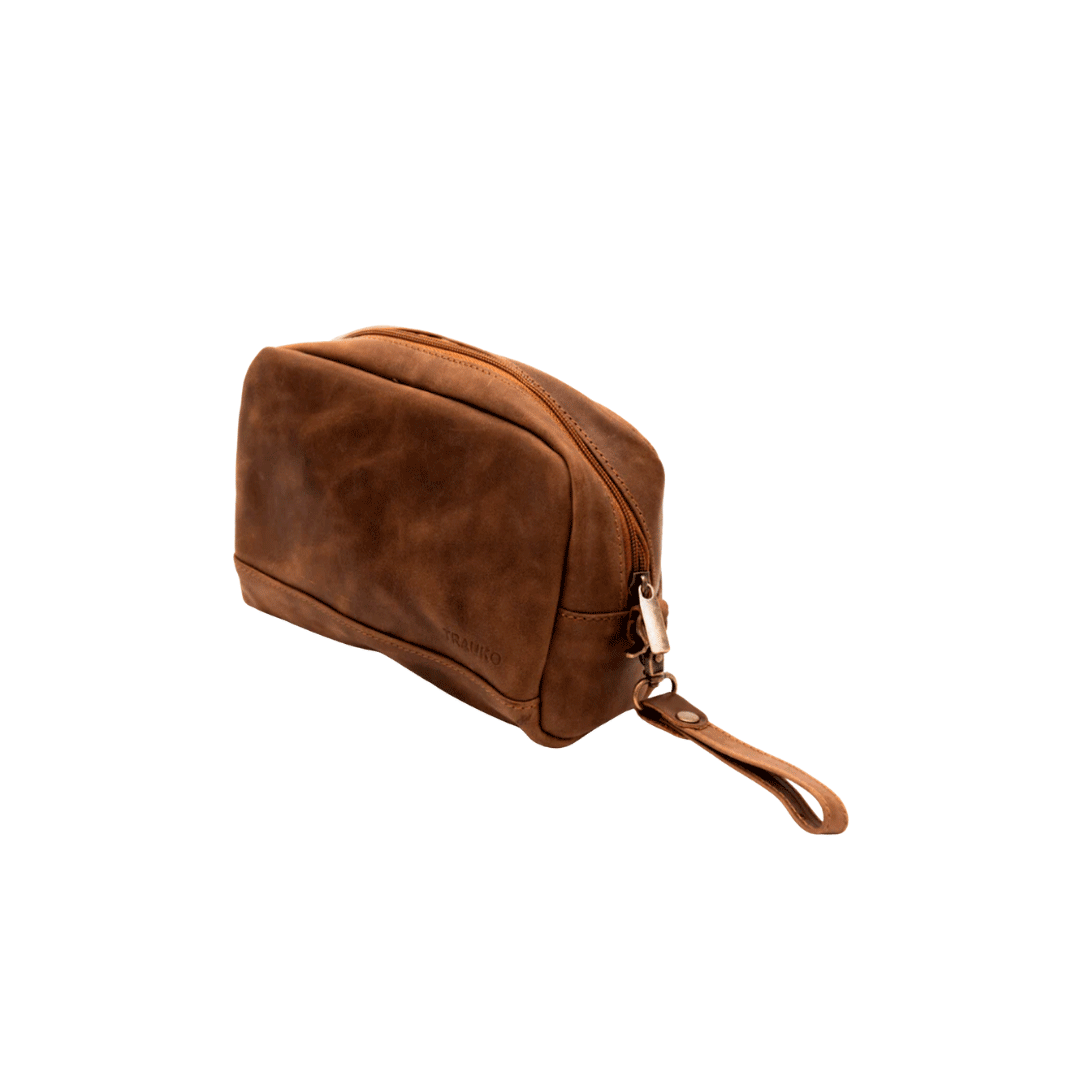Neceser vintage de cuero, creado a mano por artesanos chilenos. Medidas 22×15 cms. Presentado en caja premium de 30x14cm con logo a un color y cinta a elección.