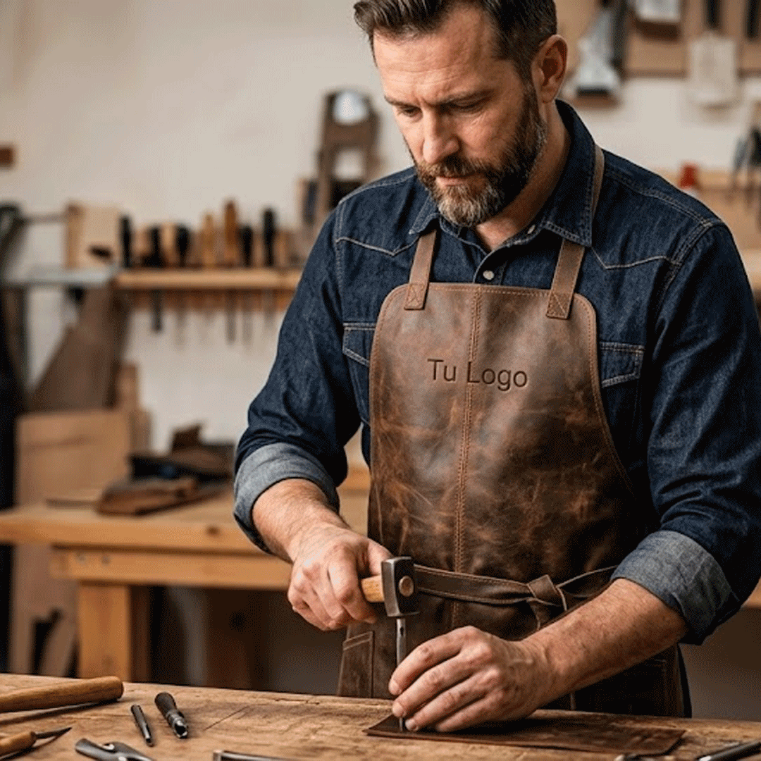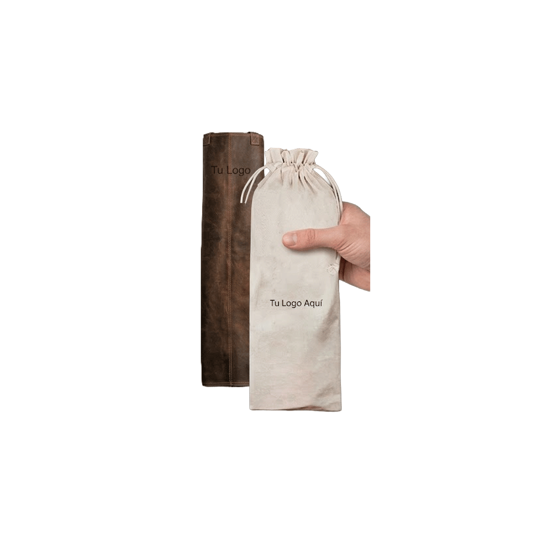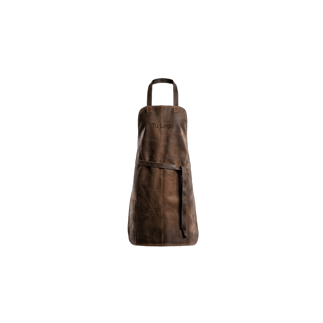 Pechera de cuero graso ideal para la parrilla reajustable, con un pequeño bolsillo al costado para cuchillo. Logo en grabado laser. Presentado en bolsa de algodón 63×13 cm con logo a un color.
