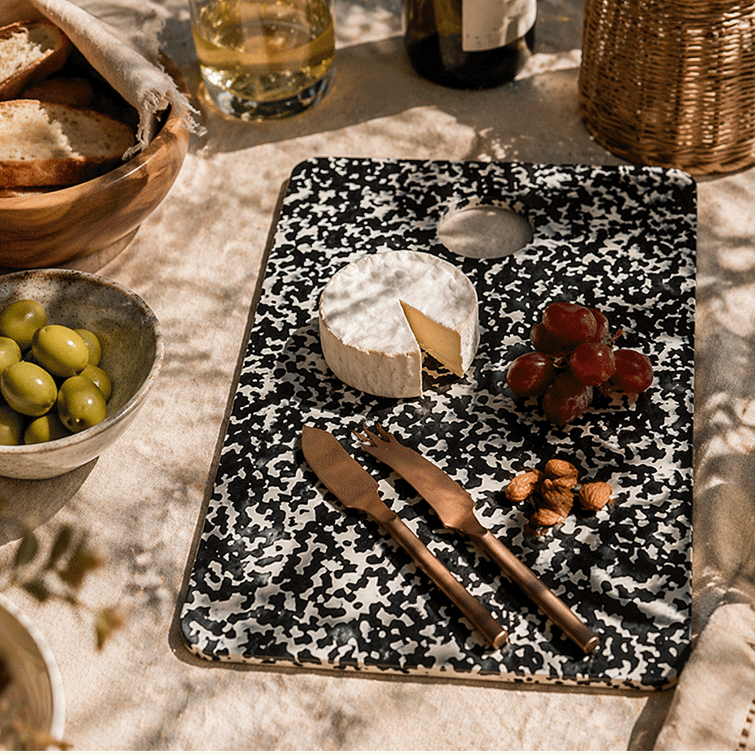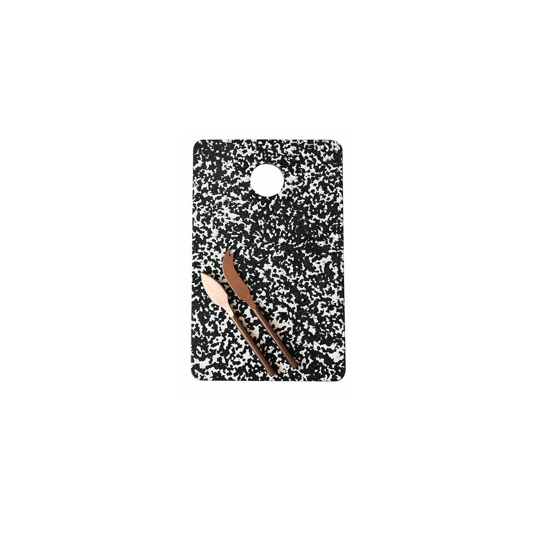 Tabla sustentable tamaño 34x22cm, hecha a partir de plástico HDPE reciclado, libre de sustancias toxicas,sticker de eco equivalencia se puede personalizar con logo. Incluye 2 herramientas para queso en color cobre. Presentado en caja premium imantada de 34x23cm con logo a un color y cinta a elección