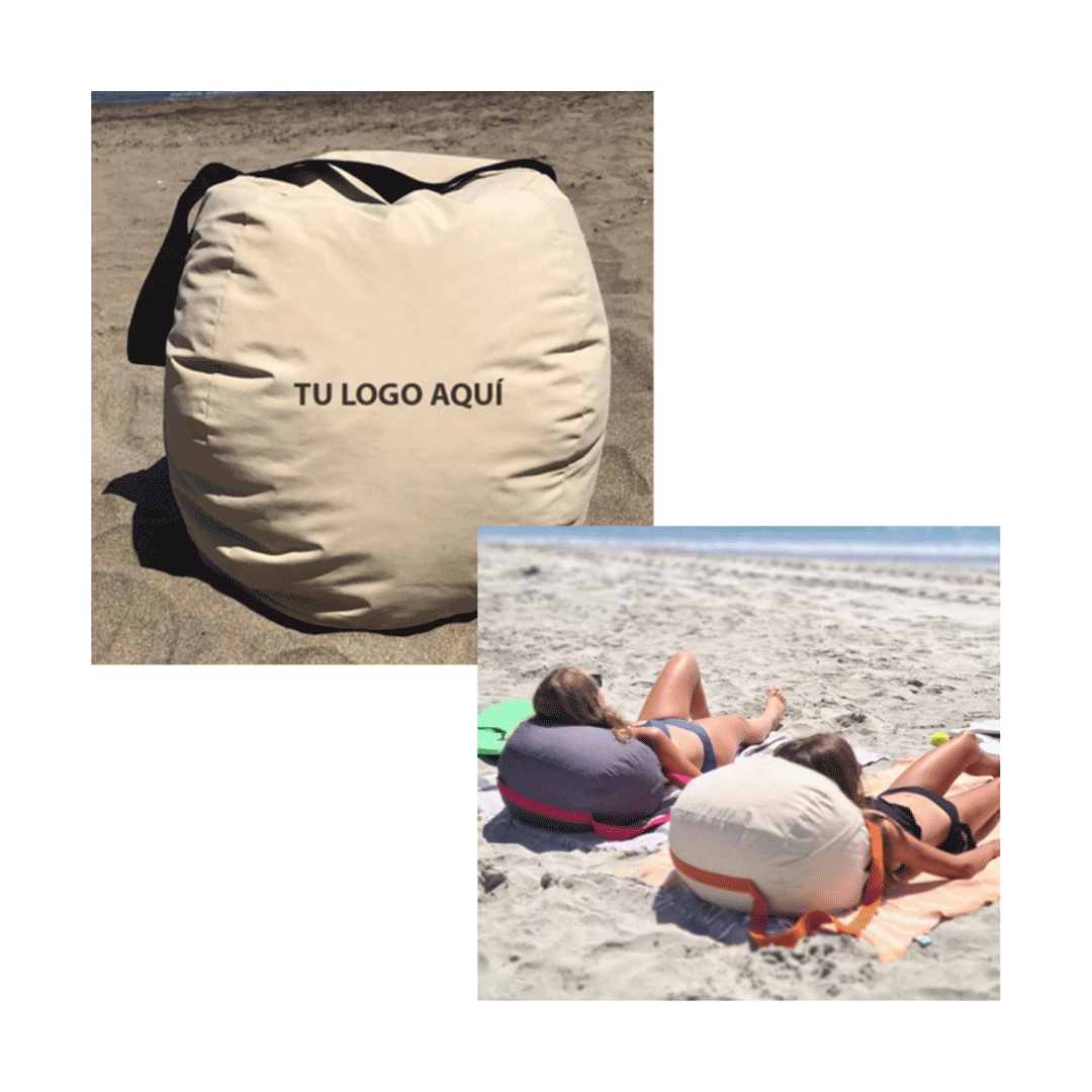 Bolsa puff con correa transportable y bolsillo con cierre para celular, lllaves, etc. Consta de dos piezas independientes una de tela impermeable (lavable) y un forro interior relleno de plumavit perla. Puede ser con tu color corporativo y con tu logo bordado.