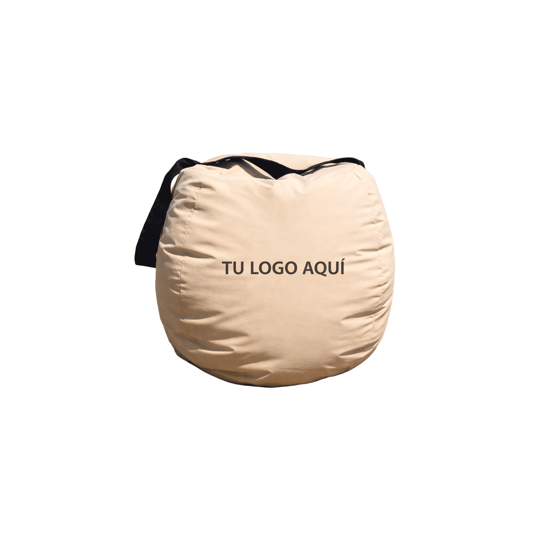 Bolsa puff con correa transportable y bolsillo con cierre para celular, lllaves, etc. Consta de dos piezas independientes una de tela impermeable (lavable) y un forro interior relleno de plumavit perla. Puede ser con tu color corporativo y con tu logo bordado.